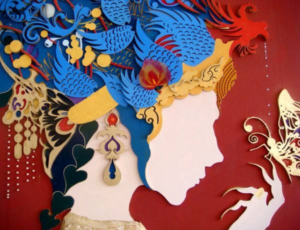 2展厅:书画剪纸、服装服饰与锦绣编织、佛教用品、文房四宝、民族乐器、包装设计等展区。