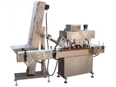 该机种设计新颖独到、机械扭矩控制智能化,并且操作与调节十分便利,操作人员只需将瓶盖置于瓶口上,瓶子在向前运行的过程中,瓶盖被三组搓盖轮自动拧紧。既可用于单机生产,更是连线生产的理想机型。可方便地升级为完全的自动旋盖机ASP,我们有提升式、斜盘式、震荡式等落盖系统,可根据实际需要选配。
