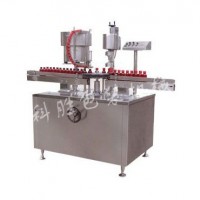 衡水科胜500电动轧盖机|西林瓶旋盖机|河北旋盖机 衡水科胜500电动轧盖机|西林瓶旋盖机|河北旋盖机衡水科胜西林瓶500电动轧盖机该机为台式三只旋风刀式轧盖机,台面用不锈钢板制成,整洁耐腐蚀易清扫,轧盖刀头系用优质钢材加工而成,表面谇火处理,经久耐用。工作时,被轧盖瓶不转,均布 120三只旋风刀旋转轧盖封口,刀柄设计为弹簧结构,三刀的距离可以微调,适应性强,轧盖成品率高,马达罩也选用不锈钢罩 ,整机外型整洁,适用价值高,加工工艺精良,使用操作方便简单,是、yiyu