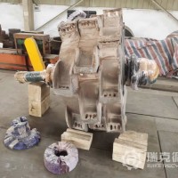 美卓C145颚式破碎机维修 国内某大型铁矿美卓C145颚破在我公司检修。该动颚部的主要问题是动颚体开裂。设备到我公司后从检查到修复是如下流程。 1、拆解、清洗、复检各部尺寸; 2、动颚体:内孔磨损严重,补焊再加工;动颚侧板裂纹处刨开补焊,增加钢板加固;动颚体勾角处刨开补焊,颚板安装面磨损处补焊、颚板定位块修整,整体退火处理后再加工; 3、主轴:尺寸复检,做渗透探伤。 4、轴承座2件内孔磨损严重,补焊退火后再加工; 5、轴