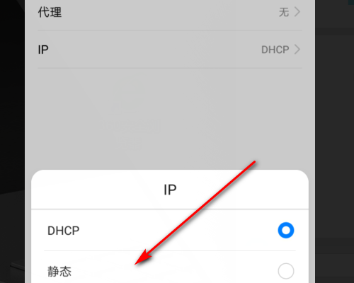 5、然后点击IP,在弹出的选择框中属选择静态。