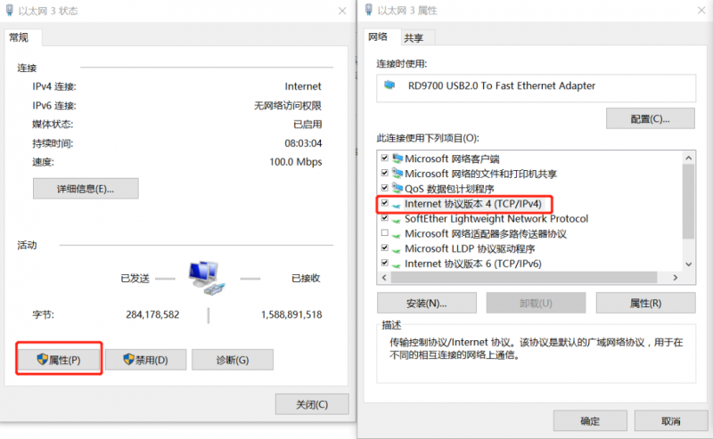 点开网络连接,【属性】【网络】,双击进入【Internet 协议版本4(TCP/IPv4)】,在【使用下面的DNS服务器地址】下方修改DNS为:223.5.5.5和114.114.114.114
