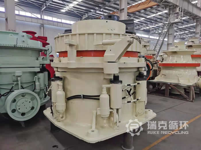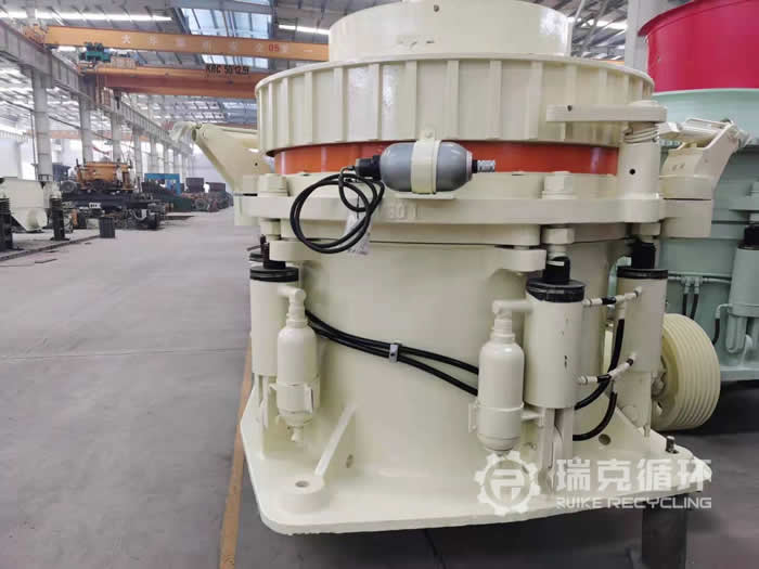 该台HP300圆锥破碎机是我公司2021年1月在湖北回收的,回收之初设备还没有拆除,协商好回收事宜之后我公司技术人员赶往现场进行实地检查,除了易损件以外其它零部件不存比较完好,技术人员在现场指导拆除并运回公司,在车间将设备整体拆好用测量仪器进行检查,然后制定检修方案,完成检修进行技术运行,各项性能符合标砖之后重新进行了喷漆。