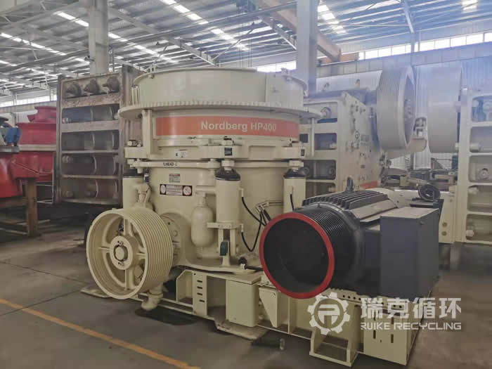 该台美卓HP400圆锥破碎机是我公司2020年12月在河北某地回收的,由于该企业资质和环保问题停产,为了减少资金积压将设备转让给我公司,该批设备还有美卓GP300S、美卓C140颚式破碎机等。设备运回公司之后,技术人员用测量仪器进行检查,根据测量结果制定了检修方案,完成检修之后进行了试机运行,各项性能均符合出厂要求,并且重新进行了喷漆,享受半年质保服务。