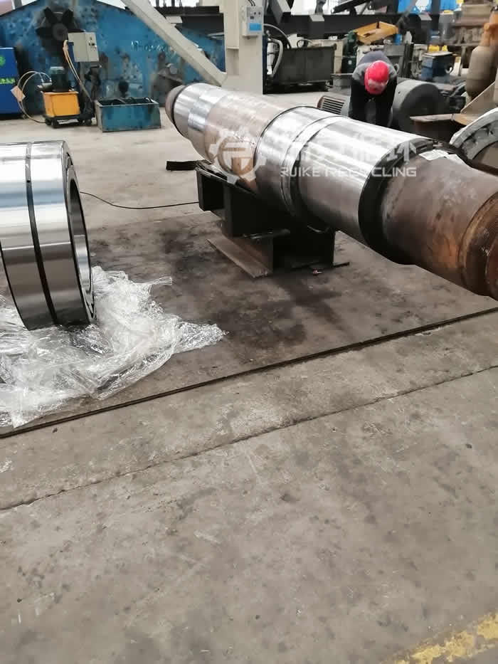 另外,发现由于维护保养不及时,造成鄂破定位轴承和传动轴承有磨损,经检查发现轴承内径尺寸明显大于技术要求,需更换全新轴承。测量鄂破偏心轴发现,偏心轴尺寸符合技术参数要求,只需按新机安装要求处理即可。