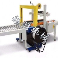 封箱打包一体机是一款集封箱、打包为一体的自动化设备。该封箱打包一体机采用将封箱机皮带加长的原理,用封箱机的驱动皮带将物品输送到打包机的台面上,整套设备由同一PLC控制。即解决了客户封箱打包整体作业的需求,同时大大为客户节省了生产成本,是一款经济实用的自动化包装设备。