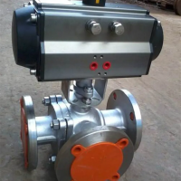 当气动执行器与电路和系统气源接通后,空气通过管道A或B管进入A缸(B缸)推动活塞向一端运动,从而带动旋转轴和球芯转动90°