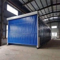 3、伸缩移动喷漆房整体为框架传动结构,每组框架间均有阻燃PVC布密封连接,安装快捷、外形美观,结构精巧,使用方便,制造成本低,节约;