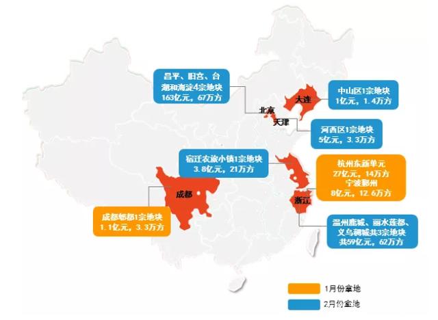 绿城中国2020年1-2月拿地分布 图源:中指研究院