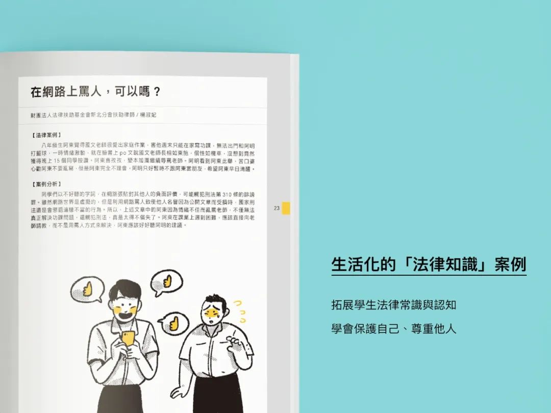 通过创造虚构的故事情境,了解各种法律道德知识。