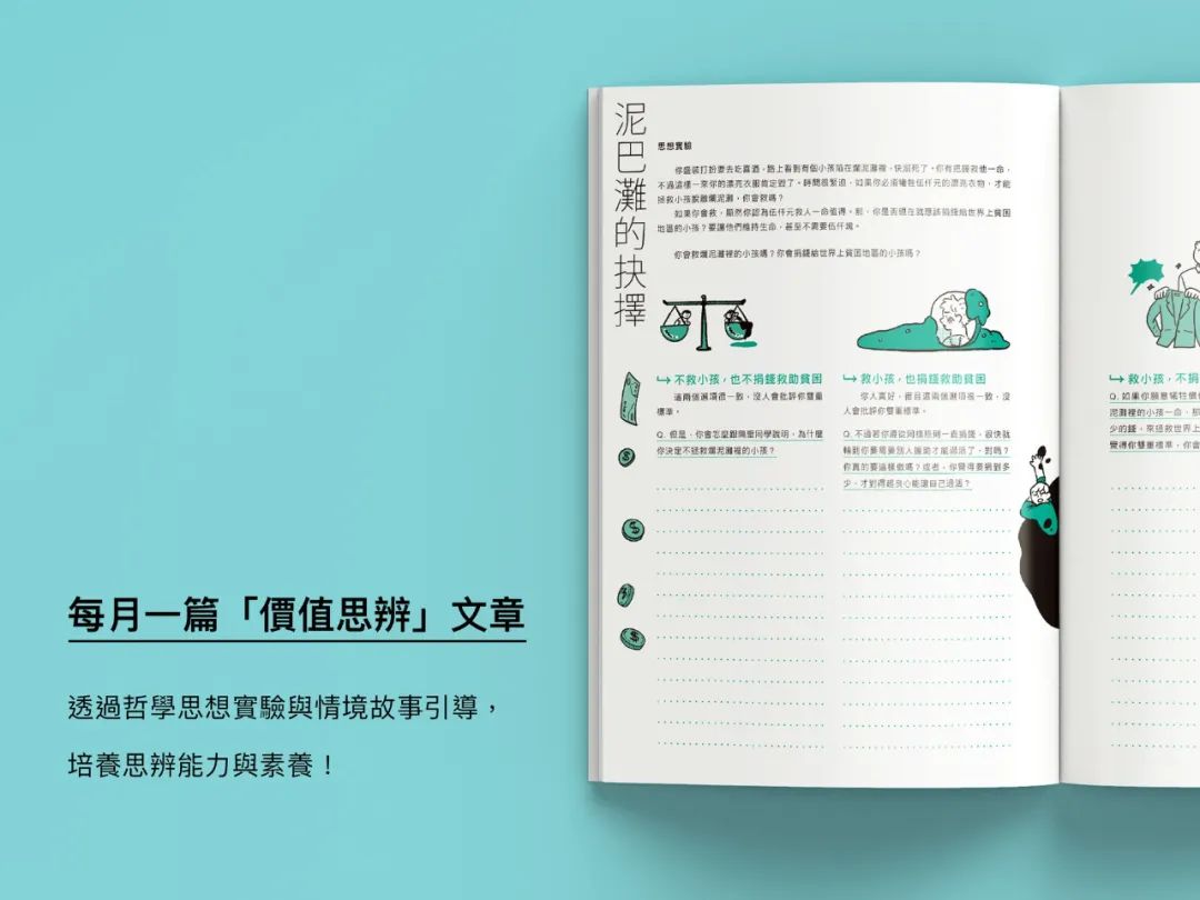 为了能协助学生可以更好的理清看待事物的原则,「美感细胞」还在这本联络簿中规划了「思想实验室」。