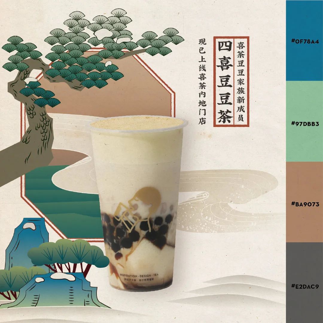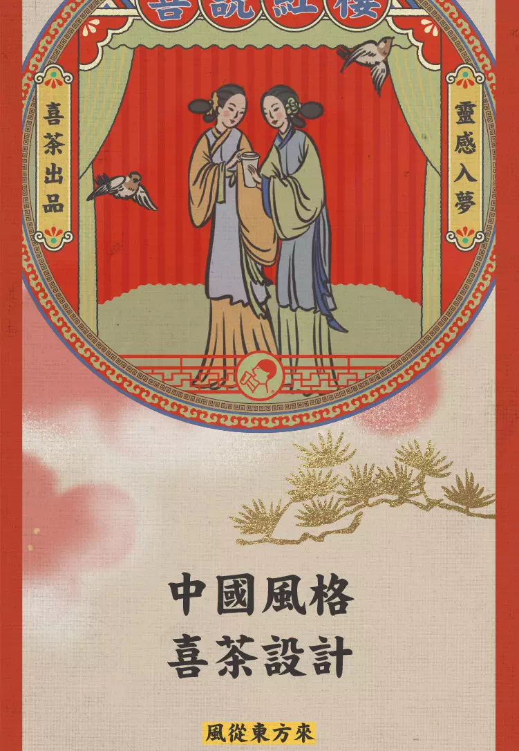 工笔画、水墨画、近代画报、古文插画等,都可以作为创作灵感来源。喜茶在古风元素的使用上也是得心应手。