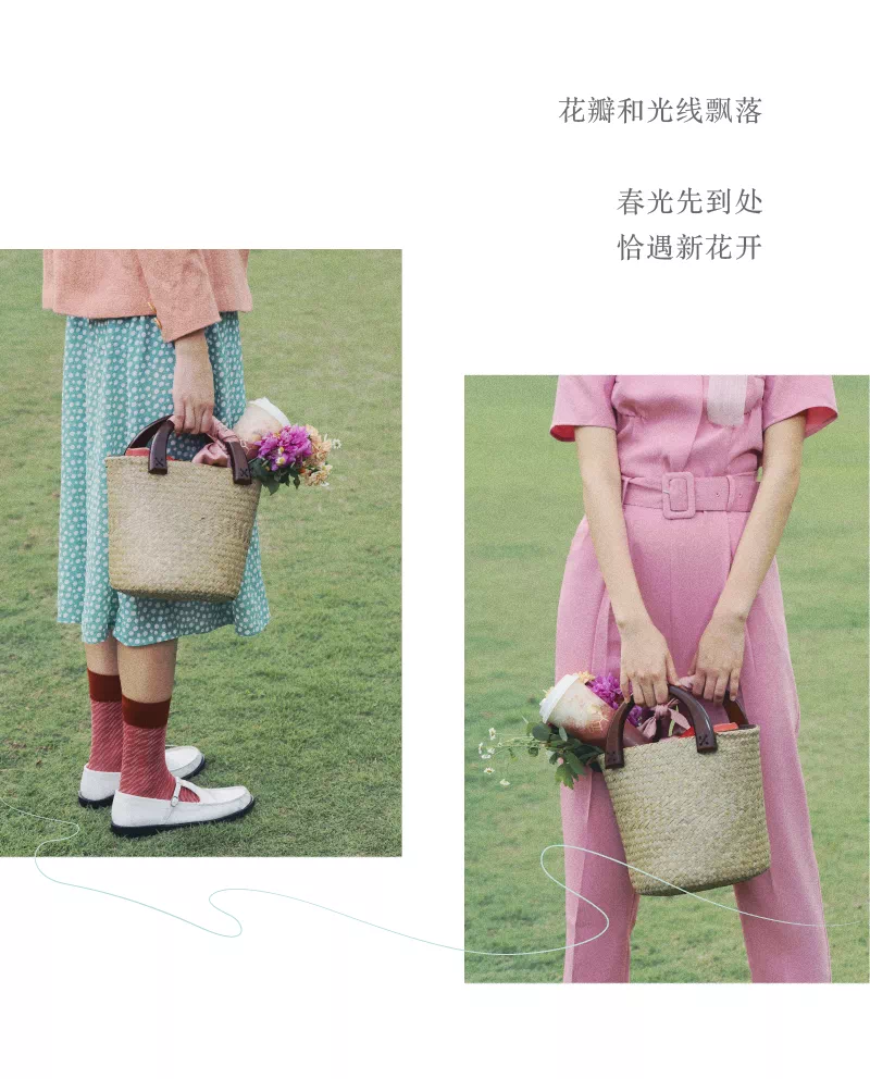 再如这篇,以春为主题,整体画面搭配意境感文案,这确定不是什么时尚杂志的春季特刊吗?!