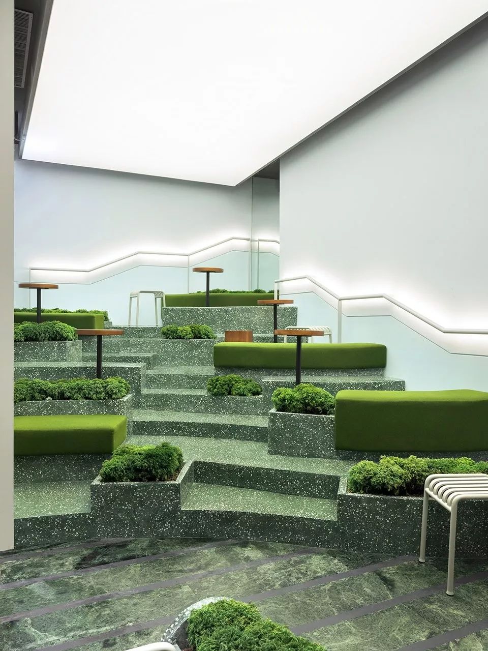走进这家喜茶店,仿佛走进一片茶园,清新自然之感扑面而来。