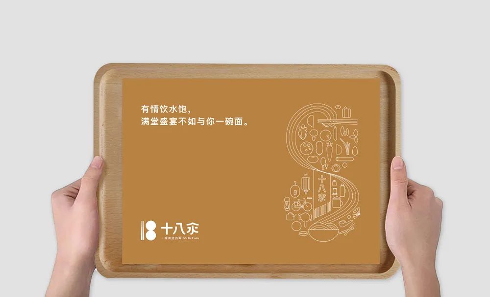 全新的品牌形象由总部位于北京的布谷品牌(bugubrand)设计完成,Logo非常直观的手法将数字「18」与筷子,碗等餐具结合起来,其中「8」字包含了两个碗,分别代表了「面」与「卤」搭配完成的中式浇面。