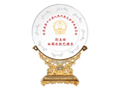 军队政府单位高档纪念礼品水晶琉璃奖盘大型活动纪念品创意定制
