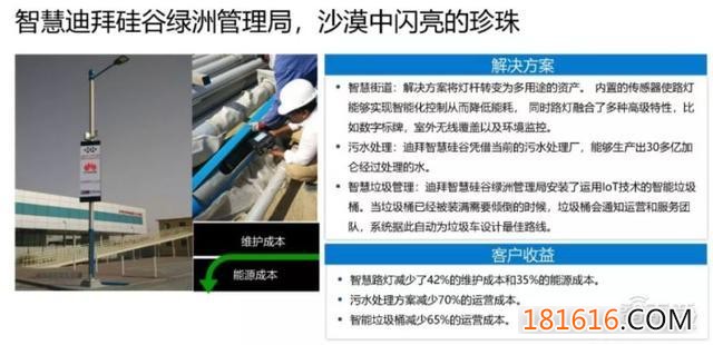 而华为在2018年3月强势进入智慧照明领域,发布了业界首个多级智能控制照明物联网解决方案,将城市照明路灯统一接入物联网络。之后,华为与照明企业开启一系列合作。华为与华体、欧普、立达信、中微光电子等照明企业建立合作,发力城市照明等领域的物联网布局。