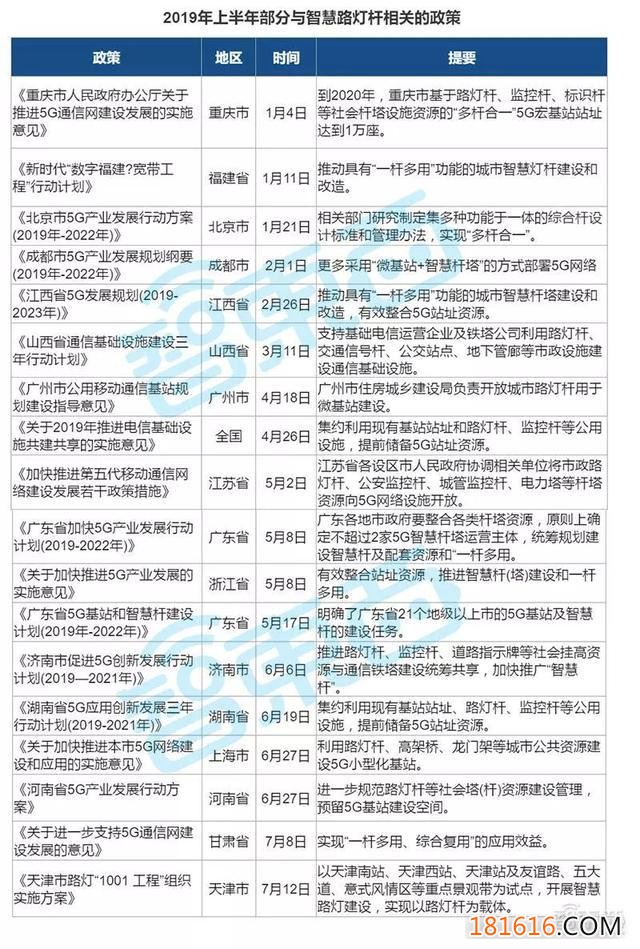 ▲2019年上半年全国各地部分涉及智慧路灯杆的政策