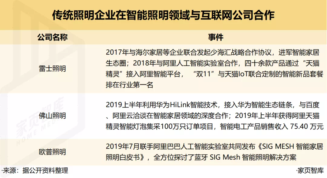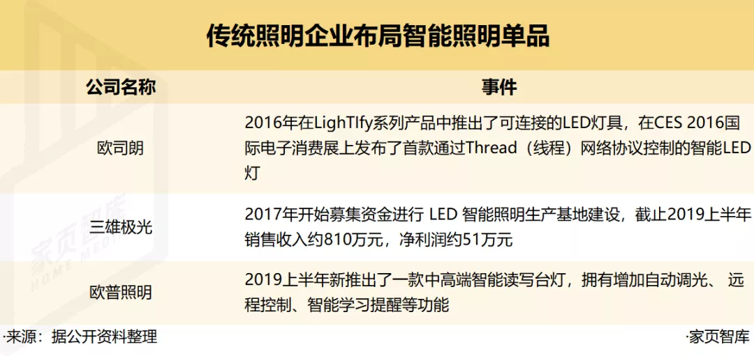 2018年,佛山照明搭建“佛照 e家”智能系统;今年上半年,欧普也推出了全宅智能家居控制系统。