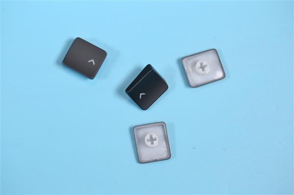 超薄abs键帽,缕空印字工艺,最薄处仅1.4mm,手感类似于笔记本的巧克力键盘。