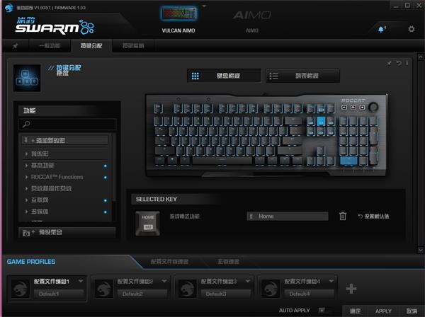 冰豹的外设产品统一使用swarm控制,在安装了冰豹产品之后,swarm程序主界面就会出现对应的控制界面。主界面有三个主界面有三个功能模块,分别是“一般功能”、“按键分配”和“按键照明”,下面则是“配置文件管理”以及“宏管理器”。