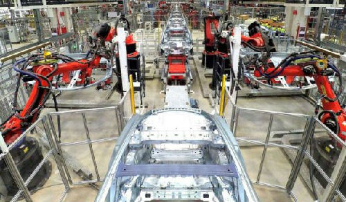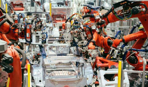 特斯拉上海超级工厂车身生产线上的库卡机器人(图片来源特斯拉财报)