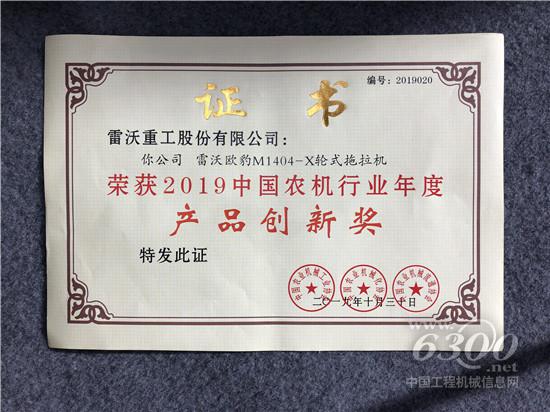 本次颁奖活动中,荣获产品创新奖的是雷沃欧豹m1404-x轮式拖拉机。