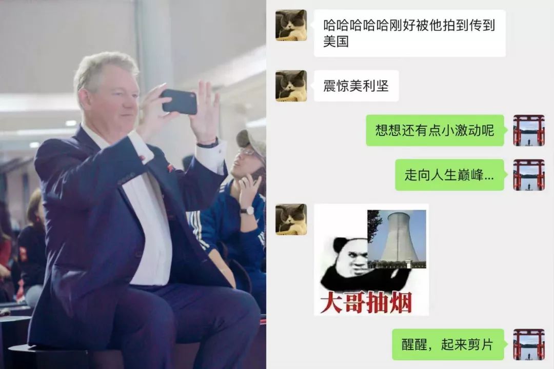 图左为客户爸爸老板的老板的老板,正在津津有味地拍摄现场播放的动画短片;图右为膨胀了的小伙伴的YY 。