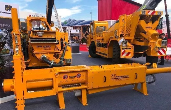 ut4777矿用混凝土搅拌车是普茨迈斯特研制的新品,也是目前德国最先进的产品,外号“小黄人”,主要适用在地下矿井巷道里。另外两款分别为:eko1260单杠固体泵和spm4210湿喷机,这个组合适用于大型化工厂、石油钻井平台和污水化工厂等。