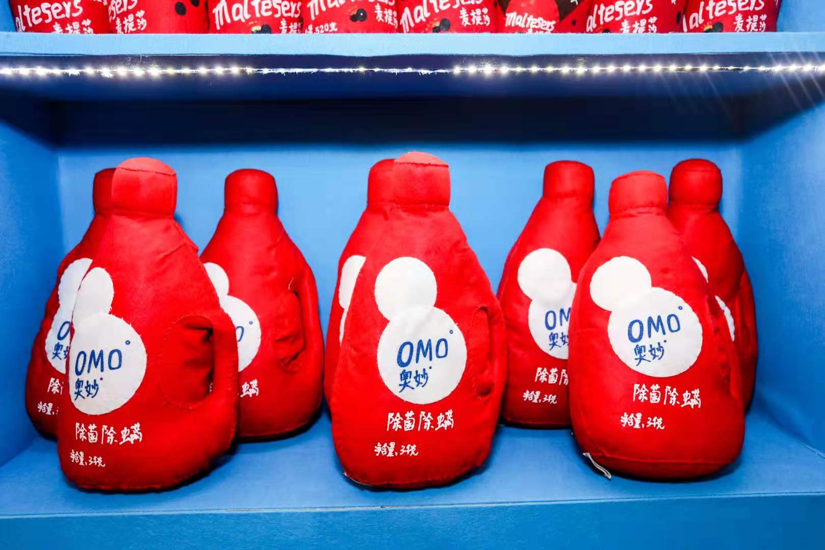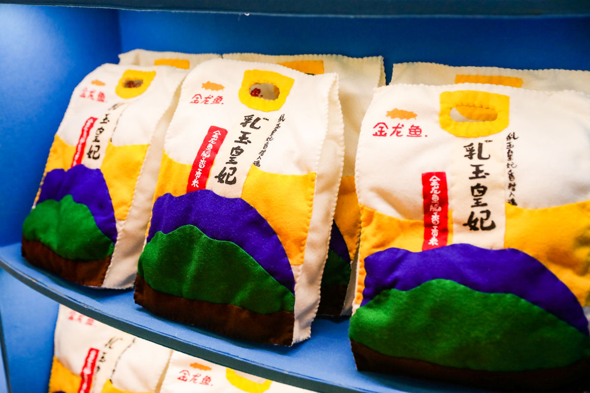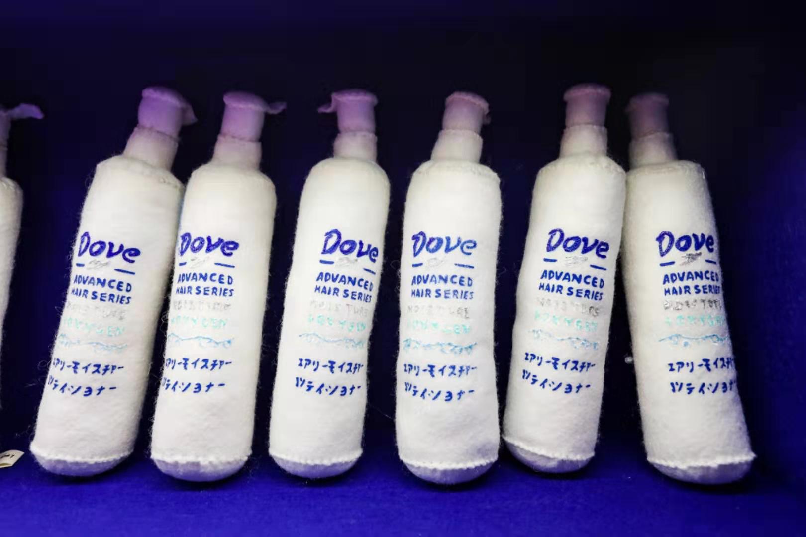 发现了没!你能在盒马鲜生卖场里买到的日日鲜牛奶、帝皇鲜黑虎虾、帝王蟹、寿司等新鲜食物,以及奥妙洗衣液、多芬洗面奶和护舒宝卫生巾等生活用品,在这里都化身呆萌柔软的毛毡艺术品,并且都带着笑脸向你发出十万伏的可爱电力,让你不得不举钱投降。