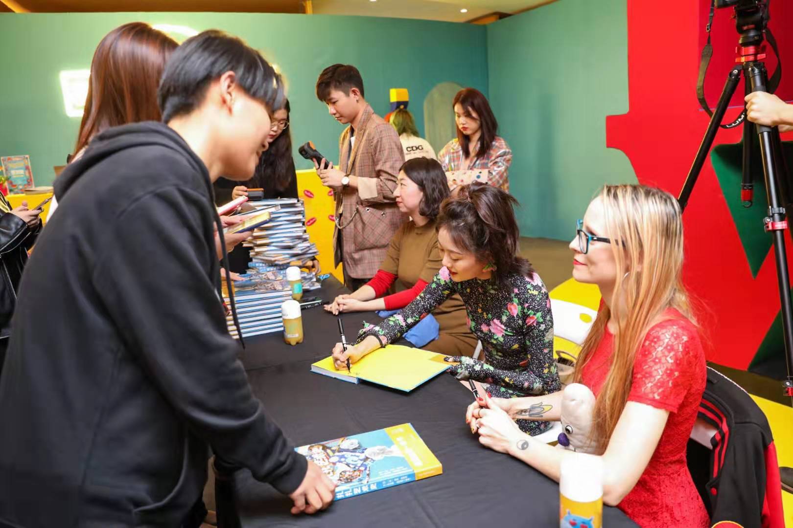 看到这里还没完,毕竟是开幕日,必须再来点重磅的。木木美术馆创始人晚晚和艺术家露西·斯帕罗本人都来了!还签售了晚晚的第一本书《毛扎扎艺术史》。(是的,真人,比照片还美!