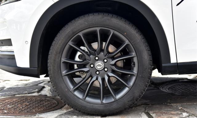 另外它这个枪灰色的轮毂采用的是20寸的大小,虽然尺寸不是很大,但是其实合脚就可以了,另外还可以看一下这个车的后窗,咱们低配车型的后窗就是普通的车窗,但是高配车型的话它才是隐私玻璃。