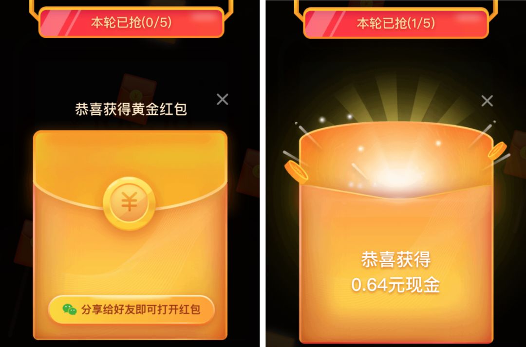 通过不同时间段的红包雨和整点福利,一方面在用户心中埋了一个钩子,不断提醒用户打开App,从而让用户坚持玩这个活动(帮自己拉新);另一方面,红包雨中的黄金红包和整点福利都需要用户分享后才能领取,又给 App 增加了曝光。