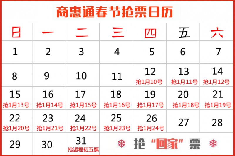 4.2019年12月31日开抢2020年1月29日大年初五的返程票。