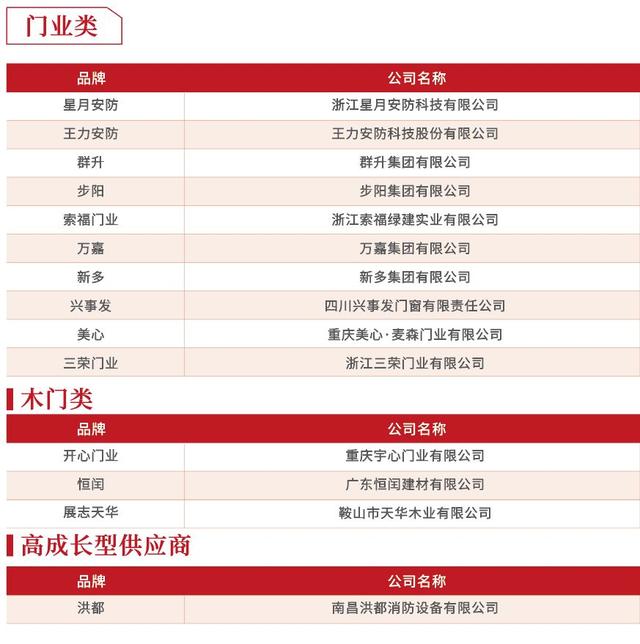 地产精装修、长租公寓等的大力推进,许多门企加大了与地产商的合作。由于门是房企产品中,客户感知度极高的部分,所以房企在选择门类产品时十分关注质量。星月安防、王力安防、群升、步阳、索福门业等都因质量优势,广受开发商欢迎,品牌格局较为稳定。