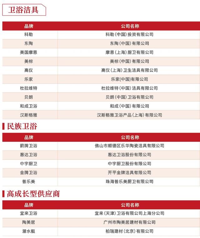 卫浴洁具供应商十强分析