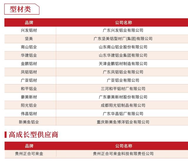 型材类供应商十强分析