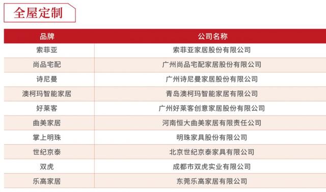 全屋定制供应商十强分析