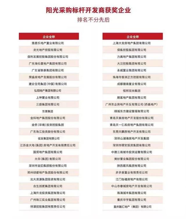 阳光采购开发商榜单揭秘