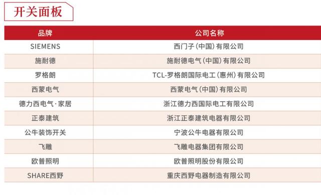 开关面板供应商十强分析