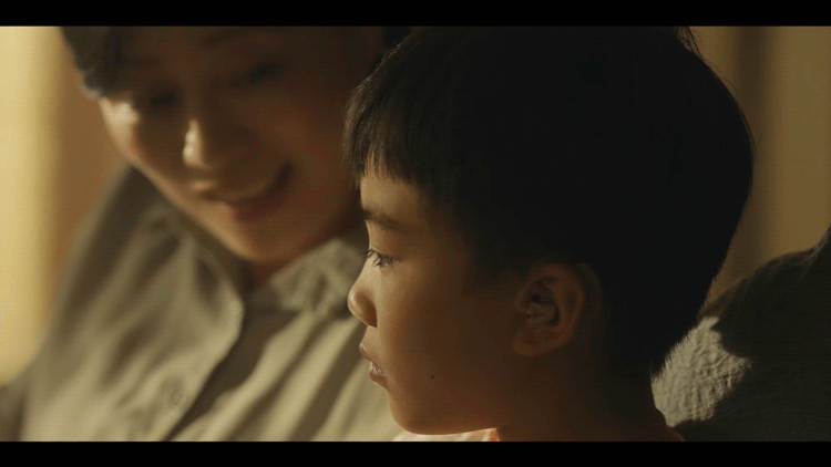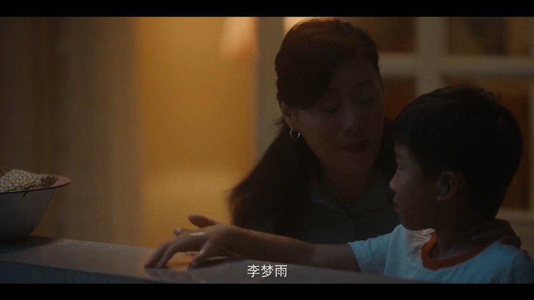 厨房里,妈妈正在教小梦雨辨别水烧开的声音,一声沸腾长鸣响起。画面又切回到了现在,长大后的李梦雨关掉了开水的炉灶,然后跟妈妈喊到“妈,水开了”,此刻的妈妈,正在沙发上睡觉。
