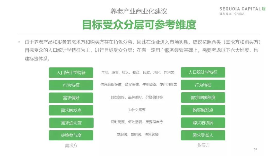 养老产品和服务的消费市场上,存在较明显的“需求方与购买方角色分离”,子女是相关产品和服务的购买方,但他们自身并没有相关需求,也不会去使用。对于创业者和从业者来说,准确的目标和需求分层应该是开拓市场和进行产品定位的第一步。