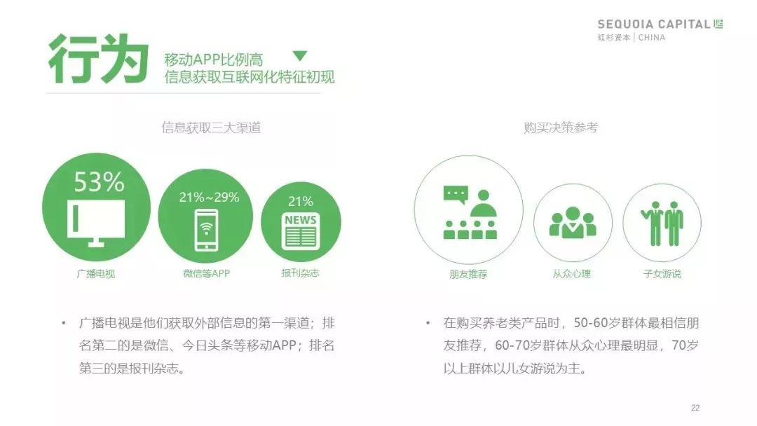 手机目前还不是老年群体获得信息的最主要方式,但随着时间发展,移动互联网在未来应该成为创业者和从业者影响老年群体用户最主要的渠道,这一“流量洼地”的价值将愈发明显。