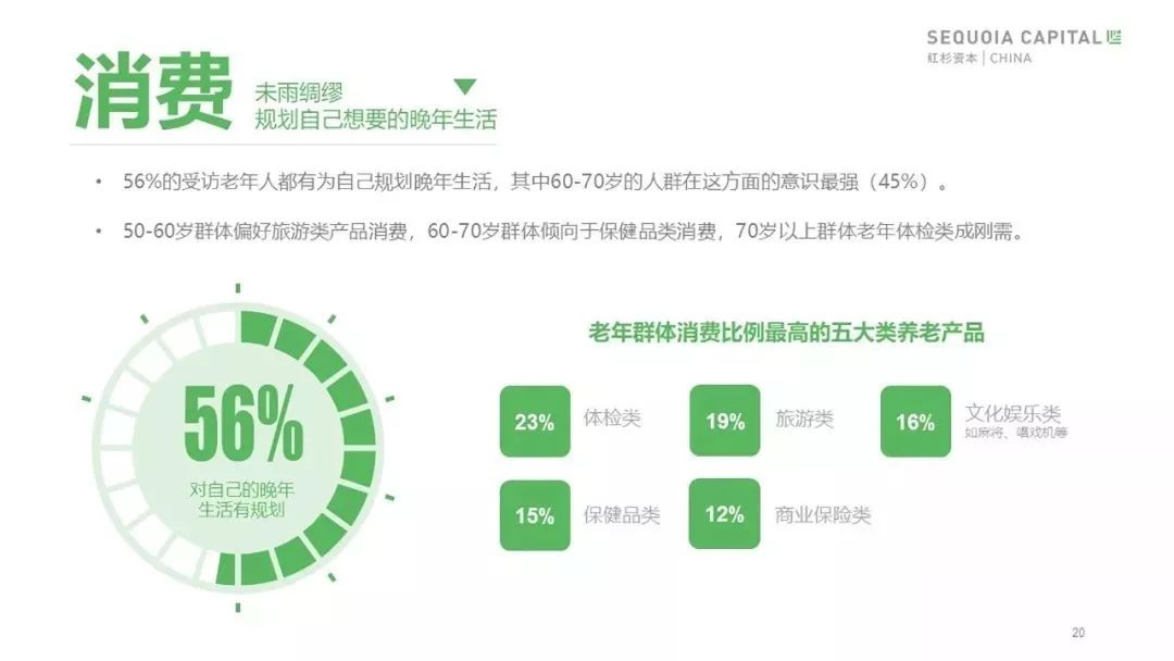 这份《2019年中国城市养老消费洞察报告》是继去年推出聚焦年青一代的《00后泛娱乐消费报告》后,红杉中国再次公开发表的行研报告。这次我们把目光转向了时间天平的另一端——老年群体。按照国际上通常将60岁以上老人达到总人口的10%,或65岁老人占总人口的7%为标准,中国正在步入深度老龄化社会。老年群体的巨大需求率先在大中型城市中被激活,成为创业者们关注的焦点。