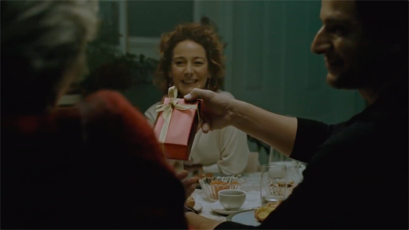 圣诞夜,儿子一家正陪着母亲用餐,楼下一位年轻男子突然按响门铃。顿时,儿子、母亲的神色都起了变化。儿子一家立马起身穿衣,留下礼物后便道别离开。似乎是刻意不想与摁门铃的人见面,儿子一家选择走楼梯下楼,年轻男子乘了电梯。