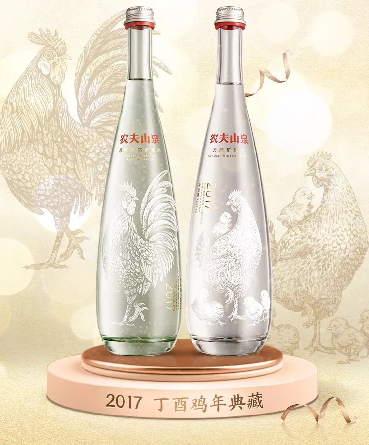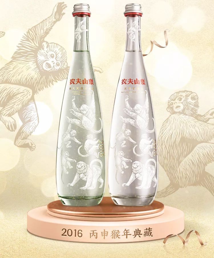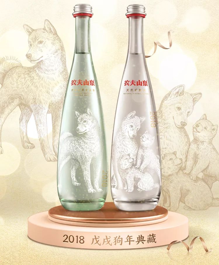 此前,农夫山泉曾推出过四款新年生肖典藏版水瓶,分别为:金猴瓶(2016)、金鸡瓶(2017)、金狗瓶(2018)和金猪瓶(2019)。每一款生肖瓶,都是对中华传统十二生肖文化的致敬与演绎,代表了农夫山泉对消费者的美好祝福 。