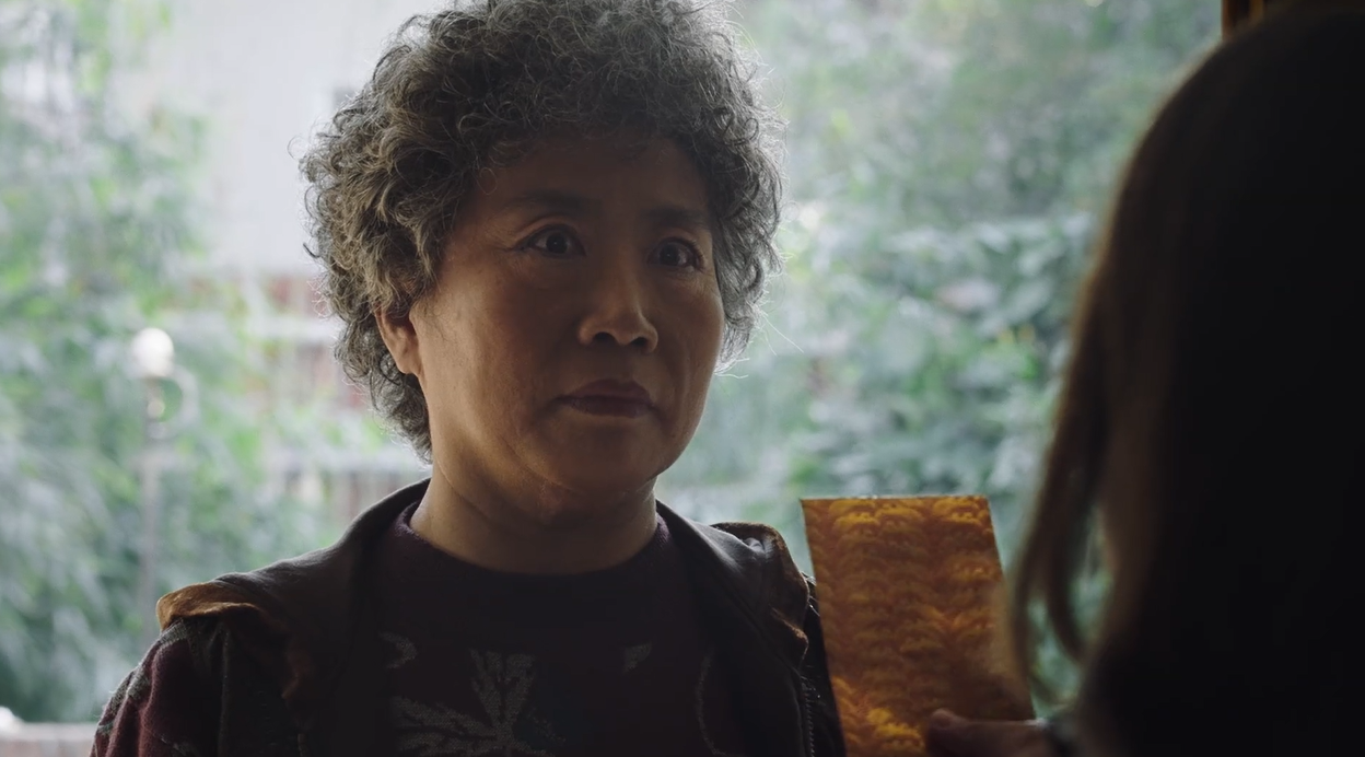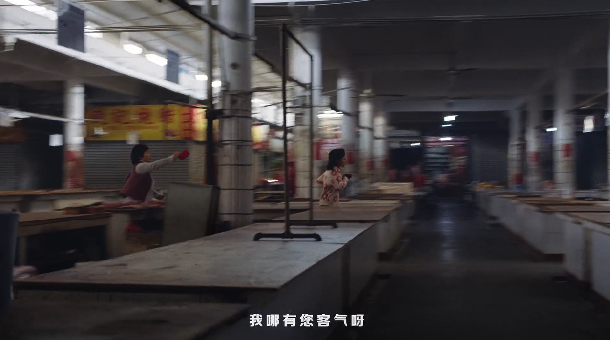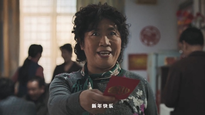 行为上,姑姑每年都举着红包追着侄女跑,从家里跑到了市场、大街、房顶,甚至野外,用夸张的剧情设计突出再一次突出侄女和姑姑在红包这件事情上的互不承让,而且速度递增的节奏更加强了冲突感。
