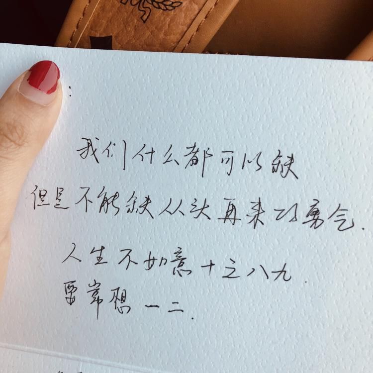 返程时,她在车站塞给我一个黑色的本子,直到火车开了,本子里掉出来一张卡片,上面写着:“我们什么都可以缺,但是不能缺从头再来的勇气。人生不如意十之八九,要常想一二。”