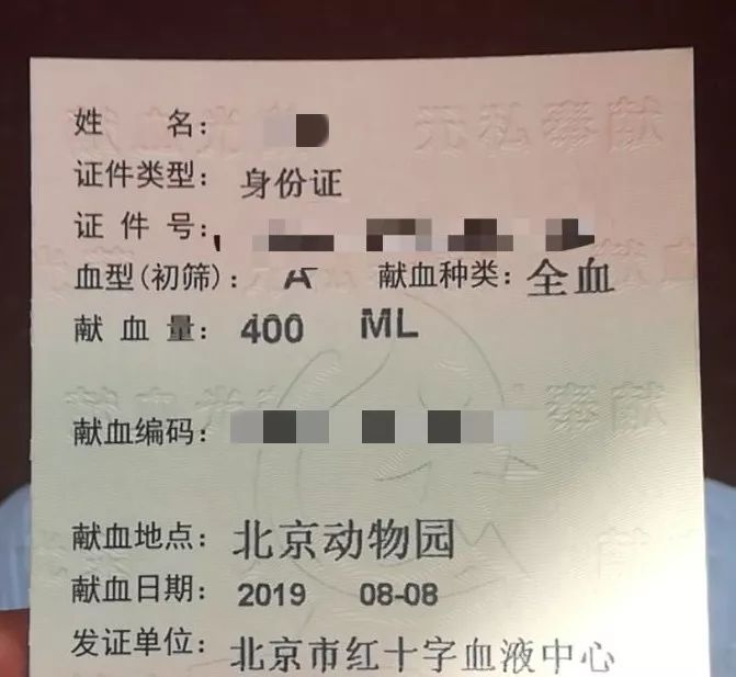 暑假一个人去北京玩,从动物园出来就鬼使神差地上了献血车。因为自己挺胖的,直接献了 400CC。