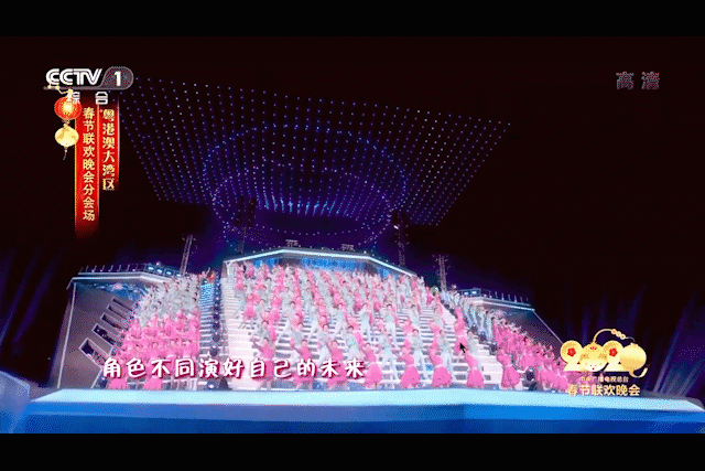 无人机这一科技硬件相信对于很多人而言已经并不陌生了,不过春晚在无人机的使用上,除了传统的作为拍摄机位使用以外,最出彩的就是“装饰”能力了。在2019年春晚上大家已经可以看到无人机组成的小型阵列作为舞台的背景装饰,而在2020年春晚的粤港澳大湾区分会场当中,无人机群的规模再次扩大。